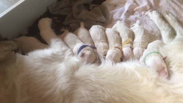 11 Welpen, leider auch ein Sternchen darunter.