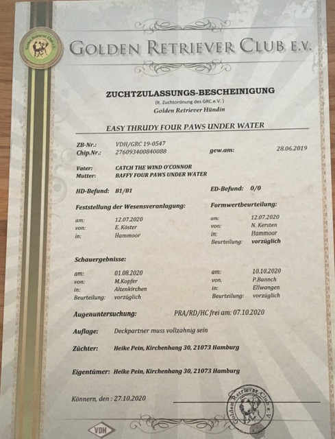 Erfüllung, der Grundstein für unsere Zucht wurde gelegt!