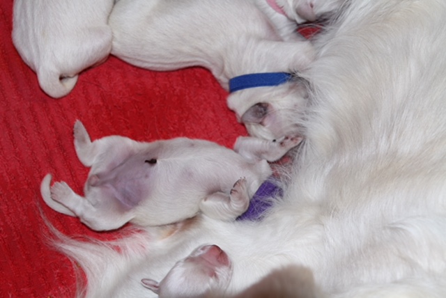 Baffy versorgt ihre kleine Familie von 6 Rüden und 3